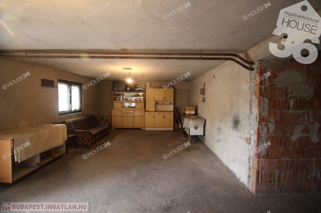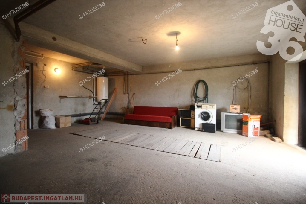 A szuterénben utcáról behajtható szerelőaknás garázs és műhely/nyári konyha/tároló (egy légtérben összesen 50 m2); további kettő, befejezésre váró helyiség (11 és 12 m2), külön hátsó bejárat.