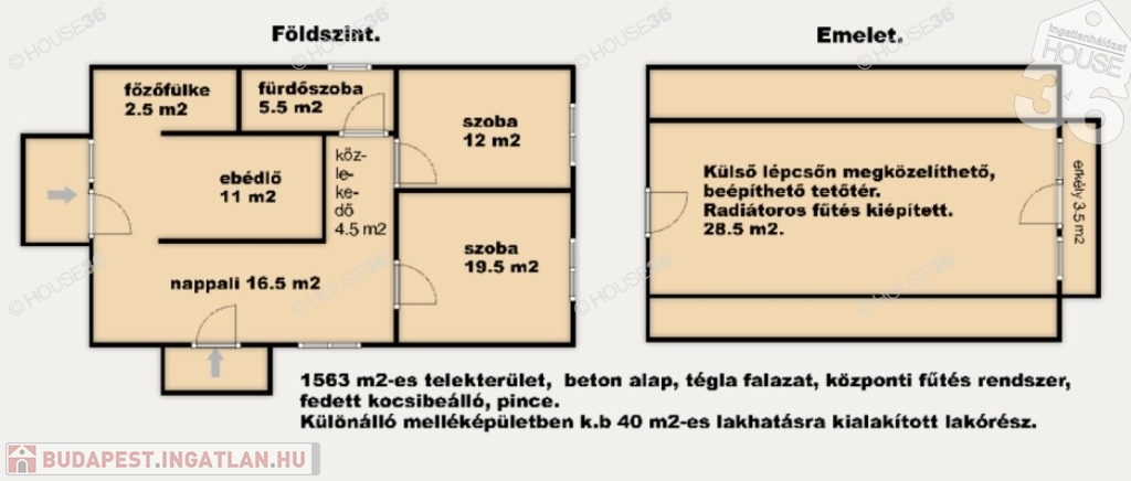 - 1563 m2-es telekterület, különálló felújítandó lakőrész k.b: 40 m2.