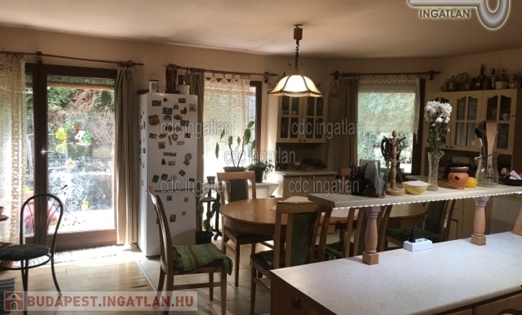 Solymár Budapesthez közelebbi részén, az Erdő utcában eladó egy bruttó 359, netto 269 nm-es, belső 3 szintes, szigetelt családi ház, amely egy 1457 nm-es telken helyezkedik el. A nyeles telken található ingatlan alapjai 2002-ben kerültek le, de a család bővülése és igényei miatt 2009-ben készült el a mai állapota. A legalsó szinten a garázs, gépészet található (gáz és vegyes tüzelésű kazán), továbbá tárolóhelyiségek, melynek falazata 38 cm-es POROZHERM falazóelem, míg a további része fa szerkezetű. Belülről és kívülről is megközelíthető a lakótér, melynek alsó része 129 nm-es, ennek majdnem a fele az am. konyhás nappali a maga 51 nm-ével, hozzátartozó kamrával, továbbá megtalálható itt 3 hálószóba, 1 nagy méretű fürdőszoba, valamint egy külön wc. A későbbiekben beépített tetőtérben kialakításra került egy nagyobb társalgó, illetve 2 hálószoba és szintén egy fürdőszoba. A kifejezetten nagy családnak tervezett ingatlan kellemes, nyugodt környezetben helyezkedik el a település központjához közeli, mégis csendes részén. A közelben minden megtalálható, ami a mindennapi élethez nélkülözhetetlen, valamint a természet és a kirándulás kedvelőinek is kikapcsolódási lehetőséget nyújt a település.