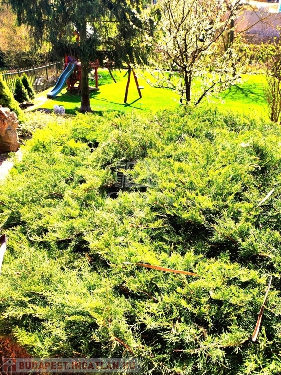 A kertben szaletli, grillező, gyerekjátszótér lett kialakítva.