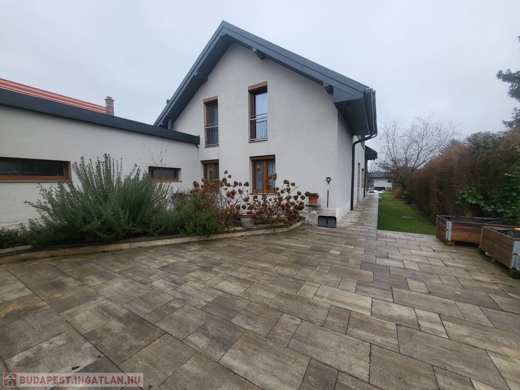A kert szakember által megtervezett, gyönyörűen karbantartott, automata öntöző rendszerrel felszerelt. Az épített medence fűthető, és ellenáramoltatott.
