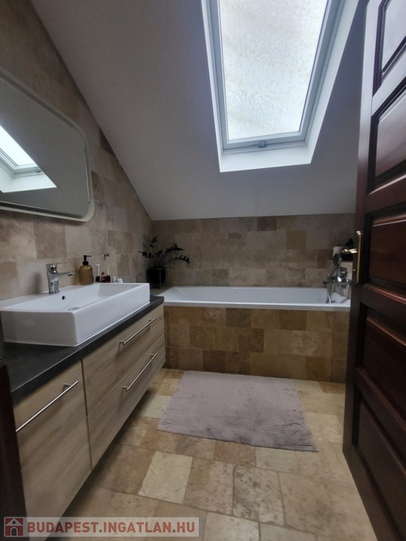 A fűtést modern kondenzációs gázkazán, padlófűtés, radiátorok, valamint a nappaliban kandalló biztosítja.