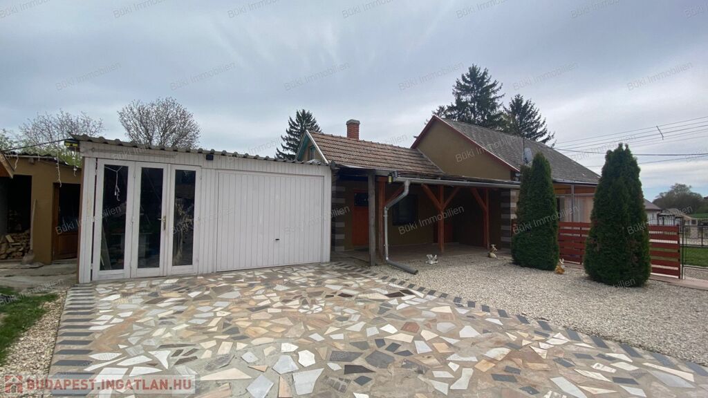 A tágas, rendezett udvar nemcsak esztétikus, hanem jól használható is. A különálló tárolóépület praktikus megoldást kínál a szerszámok vagy a téli tüzelő elhelyezésére. A parkolás kényelmesen megoldott, akár garázsban, akár az udvaron belül.