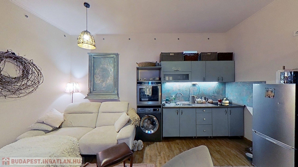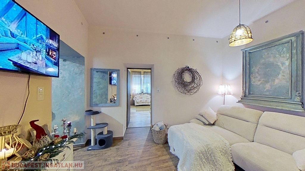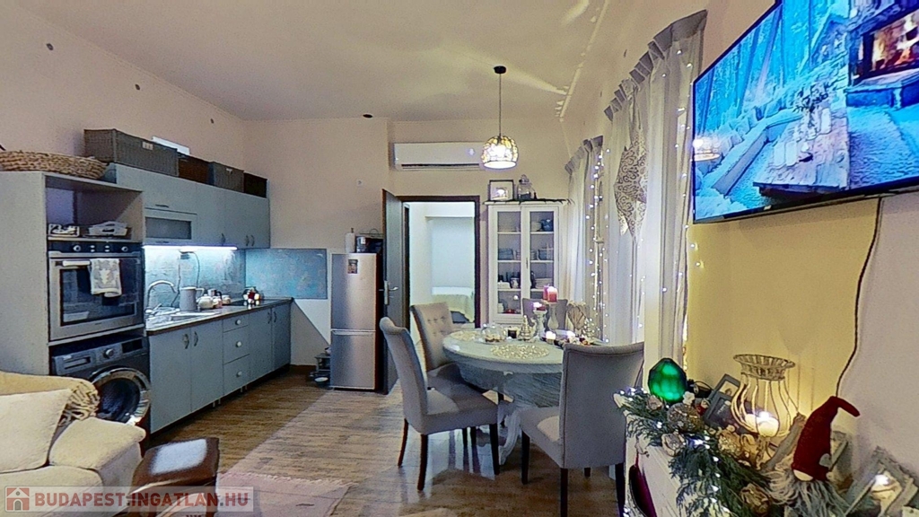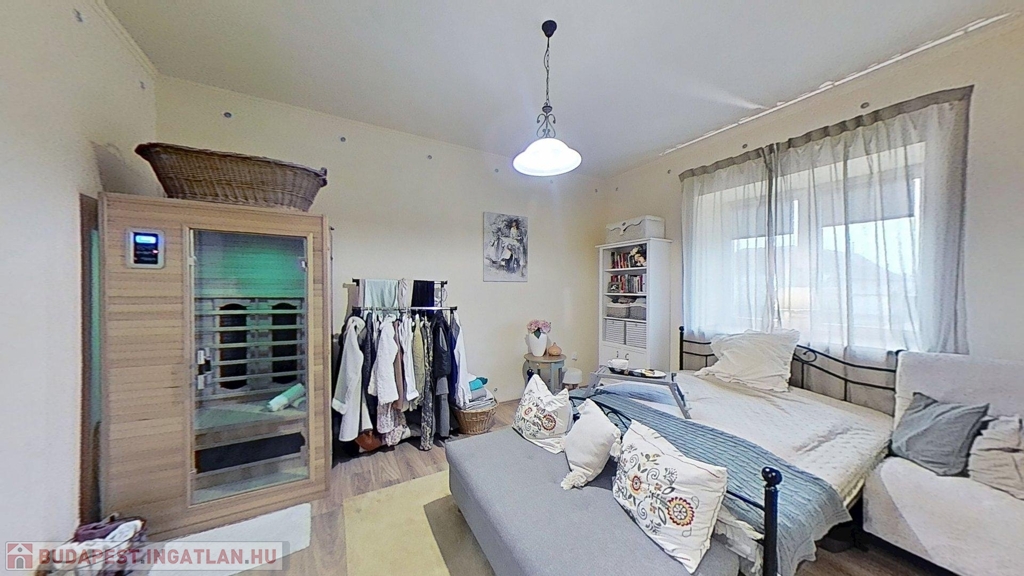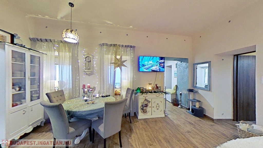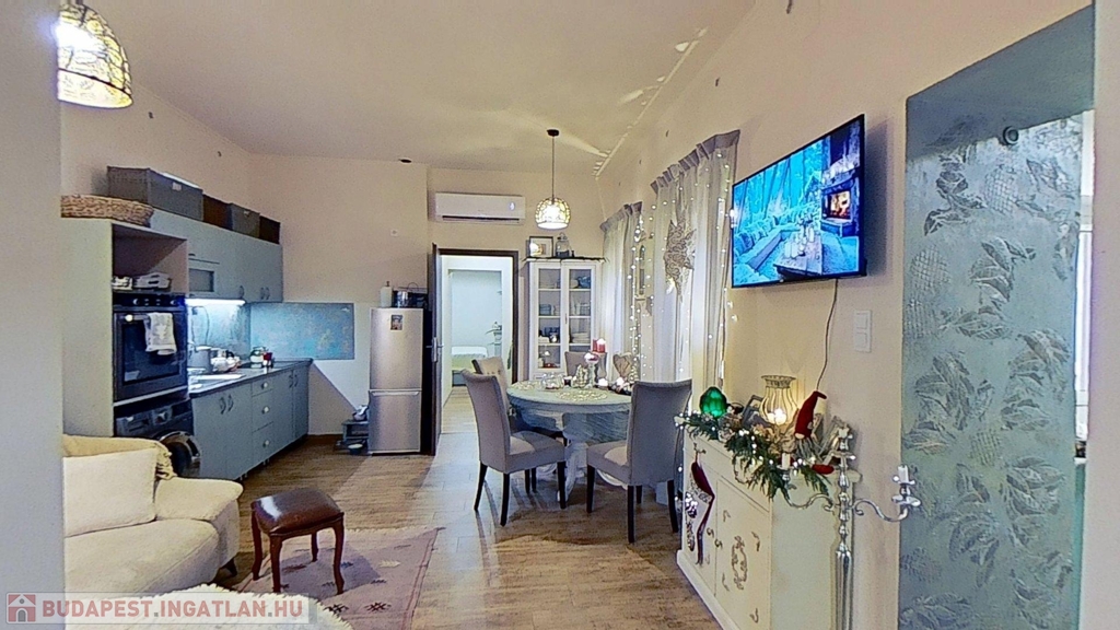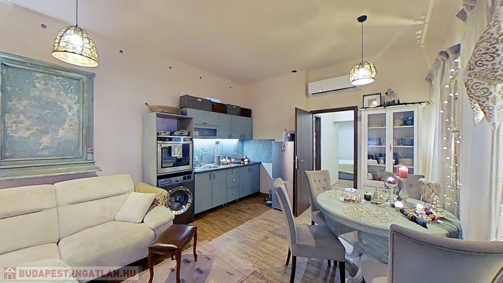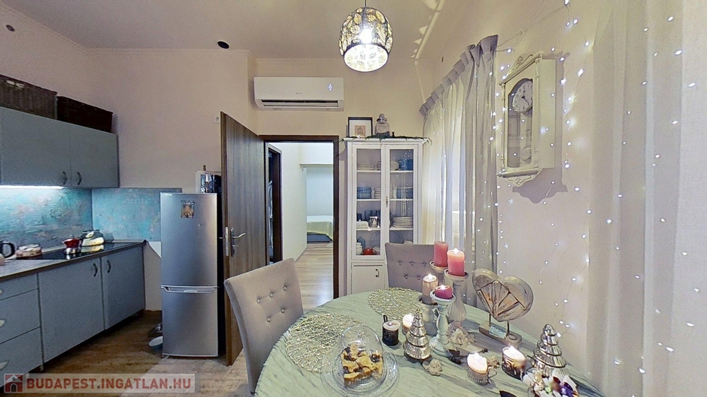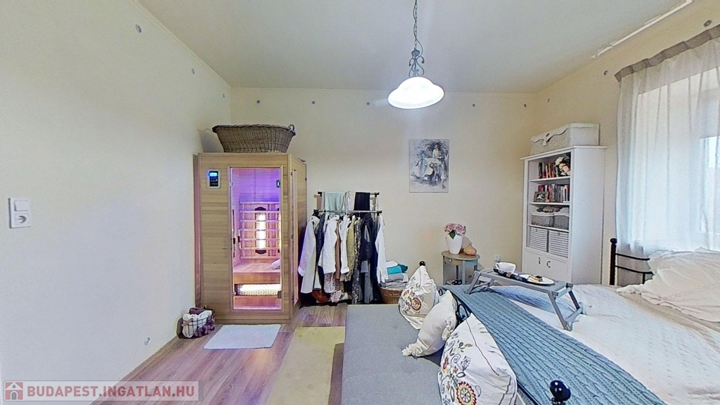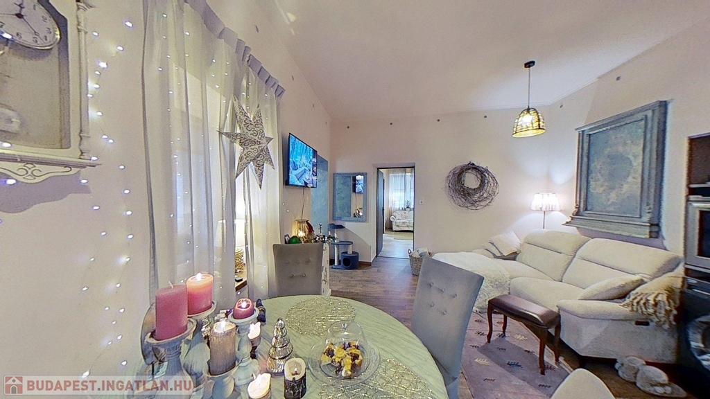 Az utcafront felé néző két szoba DNY-i tájolású, az udvar felé tekintő konyha és hálószoba DK-i tájolású. Az ingatlan válogatott berendezési tárgyai, restaurált antik bútorai harmonikus egészet alkotnak a ház stílusával, és igény esetén a vételár részét képezik. Amennyiben kiürítve szeretné megvásárolni az ingatlant, akkor az értékük (3 mFt ) a vételárból levonásra kerül. Az ingatlant tágas belső terei, modern kialakítása, világos szobái, és a jó elosztása teszi igazán vonzóvá.