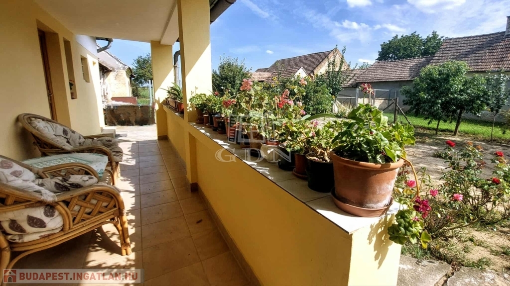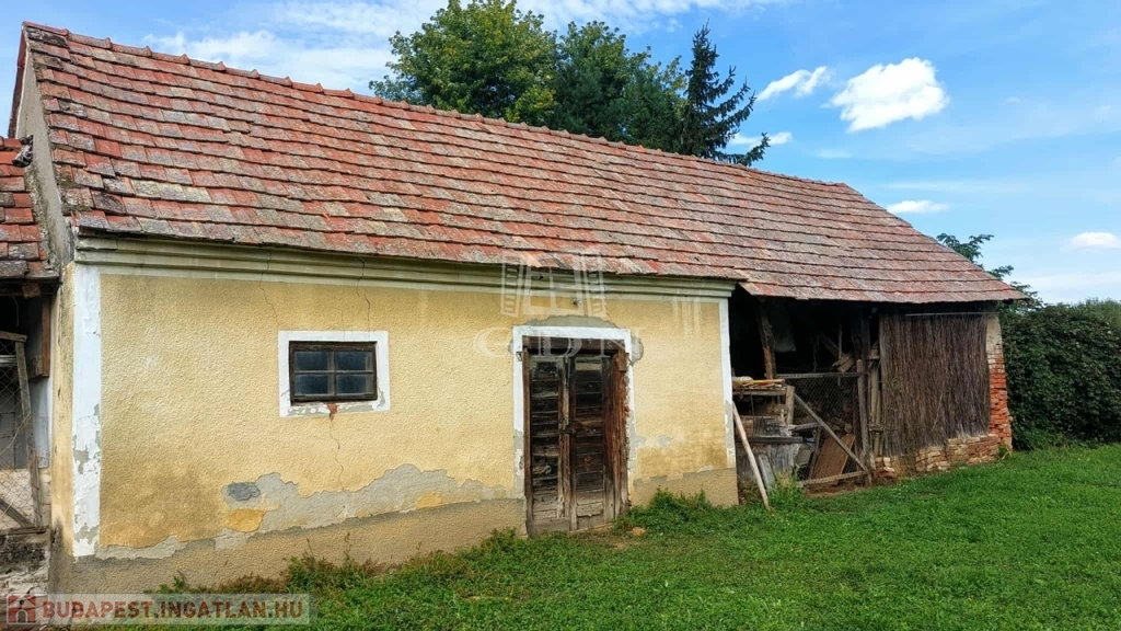 A faluban, nyugodt utcában található ez a háromszobás, 80 m2-es, közepes állapotú, teljesen lakható, de igény szerint felújítandó ház. Az utcában sok német illetve angol családnak van gyönyörűen felújított háza. Az ingatlanhoz több gazdasági épület és istálló is tartozik, a nagy telek (6962 m2) pedig számtalan lehetőséget kínál: alkalmas lehet gazdálkodásra, de akár ló- vagy más állattartásra is.