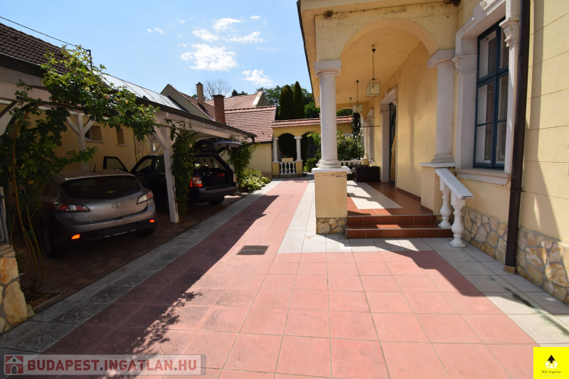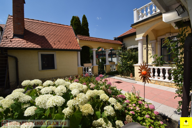 Az 1.800 m²-es, gondozott telken álló ház két elkülönülő szintje a többgenerációs együttéléshez is tökéletes megoldást kínál.