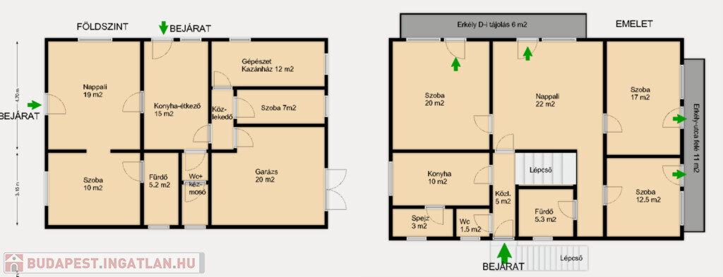 Az alsó és a felső szint teljesen külön bejárattal rendelkezik, így tökéletesen alkalmas több generáció részére, vagy otthoni vállalkozás, munkavégzés céljára.