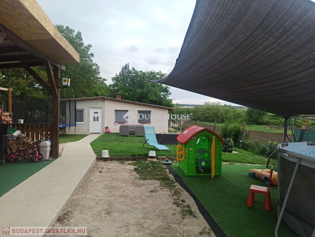 Eladó Sóskút festői szépségű részén csendes, nyugodt, zöld környezetben egy újszerű ház, 1559nm-es telken!Az ide költözőket a garantált csend, béke, nyugalom várja!A ház két ütemben épült, egy része 2010-ben, majd 2020-ban felújítva, és bővítve lett, így jelenleg 100nm-es, két külön bejáratú lakás található benne! Az átjárás biztosított a két ingatlan között, de könnyedén szeparálható!A nagyobbik lakás előszoba, nappali-étkező, külön konyha, két szoba, és egy kádas fürdőszoba, Wc-ből áll!Kamra, és kazántér is tartozik hozzá!A kisebbik lakásban pedig konyha étkező, tágas szoba/nappali, és zuhanyzós fürdőszoba Wc-vel található!Az épület nagy része könnyűszerkezetes, egy fal van ami sóskúti kőből épült!15cm-es külső szigetelés van rajta, a tetőszerkezet pedig cserép, és lindab lemez.A ház fűtéset vegyes tüzelésű kazán adja, illetve két hűtő/fűtő klima is van!A kert rendezett, kb 25nm-es műhely/tároló , és kerti kiülős pihenő is kialakításra került! Parkolás az udvarban több autó számára!Az utcában a kommunális és a szelektív szemétszállítás megoldott.Buszmegálló kb 600 méterre!További információkért, vagy megtekintéssel kapcsolatban keressen bizalommal!