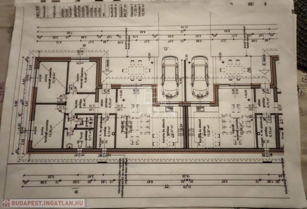 Fedett terasz:15m2 A lakás mérete 99,37 nm, a tervrajzon látható elosztásban. Egy lakás 532m2 telken helyezkedik el. Magas energia hatékonyságú A+ kategóriás lakás, fali és padlózati hőszivattyús fűtés és klíma berendezéssel ellátva. Áramellátás 3×16A, víz és csatorna ellátás központi rendszerhez csatlakozik. Természetesen a hideg, meleg burkolatok, a beltéri ajtók és a szaniterek egy meghatározott kereten belül még választhatóak.