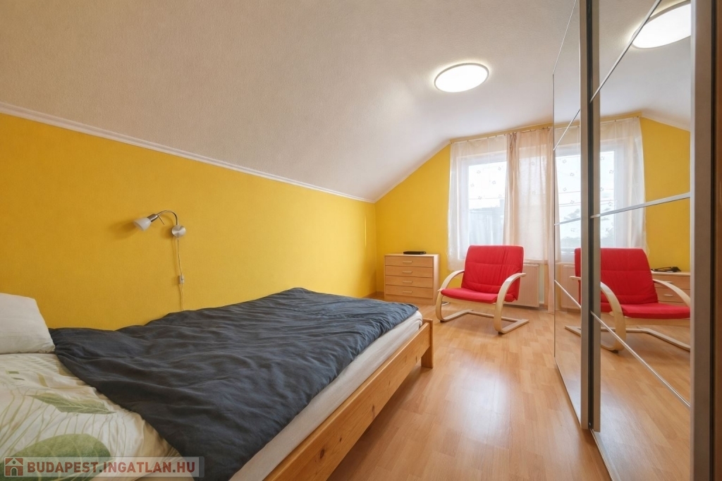 A tetőtéri szint nappali, konyha–étkező, 3 hálószoba, zuhanyzós fürdő, külön WC kiosztású.