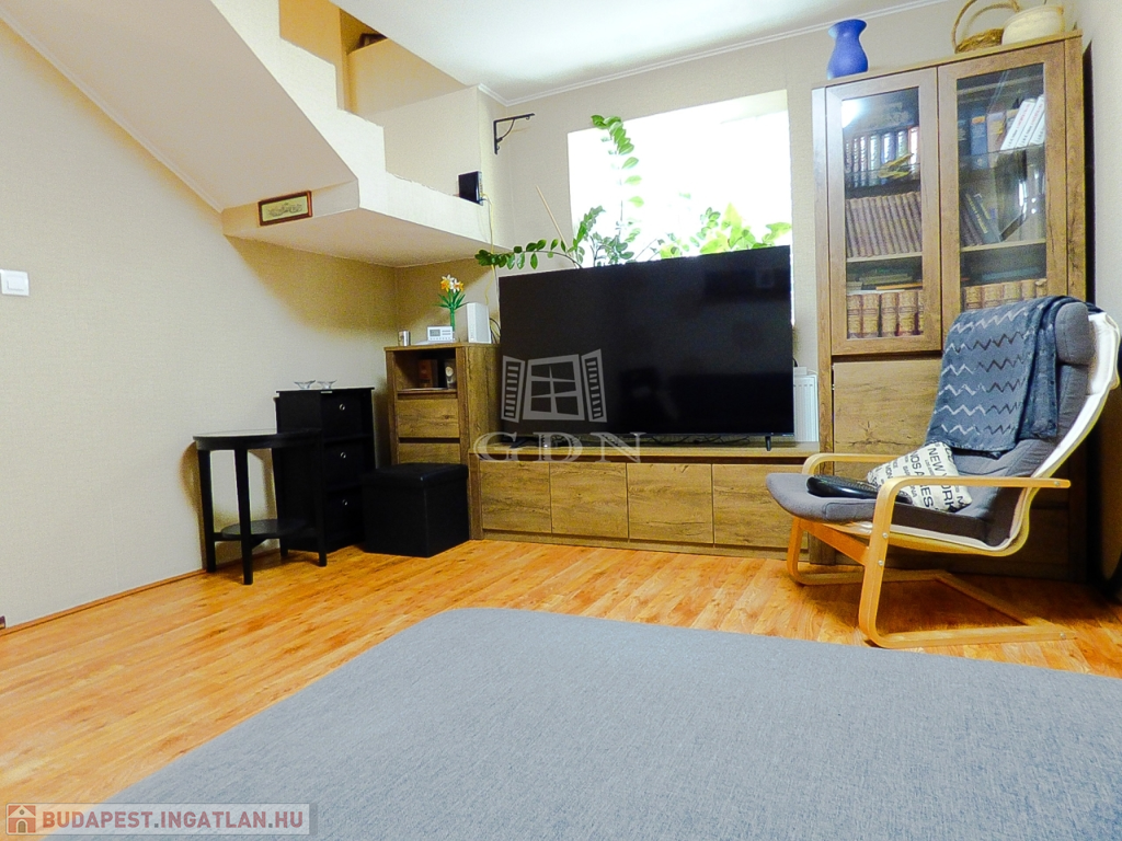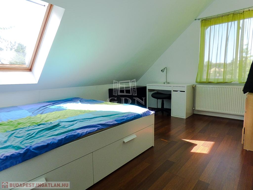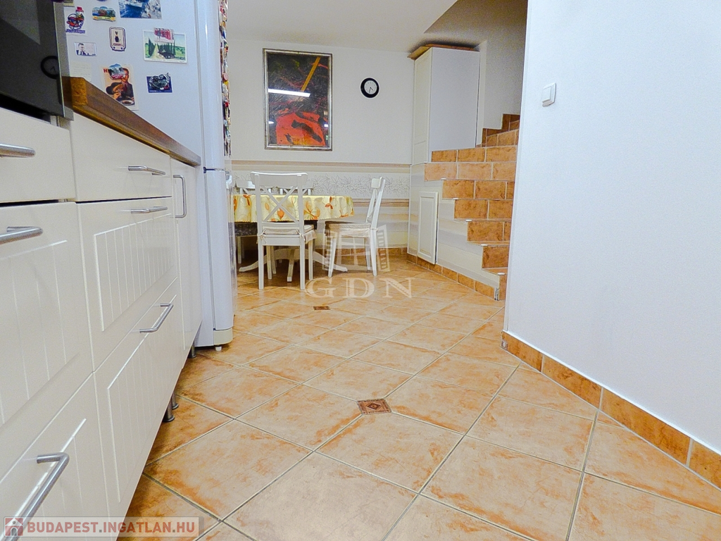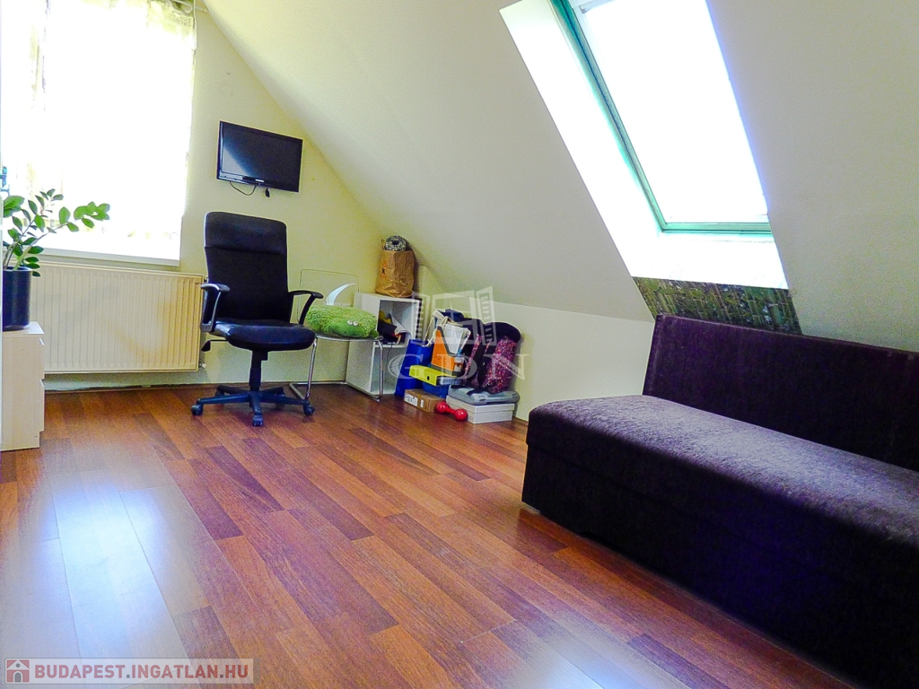 A nagyobbik lakrészen (110 nm) amerikai konyhás, étkezős nappali, 3 hálószoba, fürdőszoba, wc lett kialakítva két szinten.