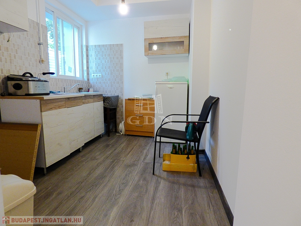 A kisebbik lakrész 35 nm-es, földszintes 1 szobával, fürdőszobával, konyhával nyerte el jelenlegi állapotát.