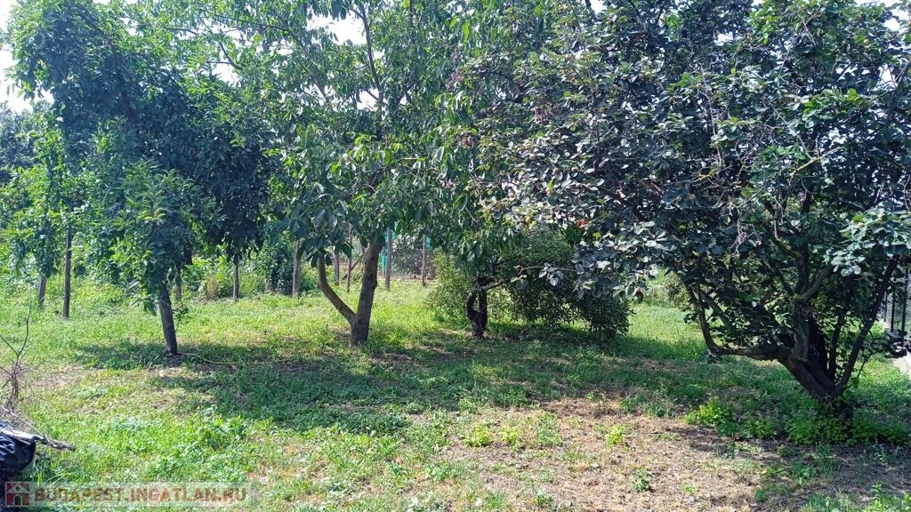 A házhoz tartozik egy tágas kert, gyümölcsfákkal.