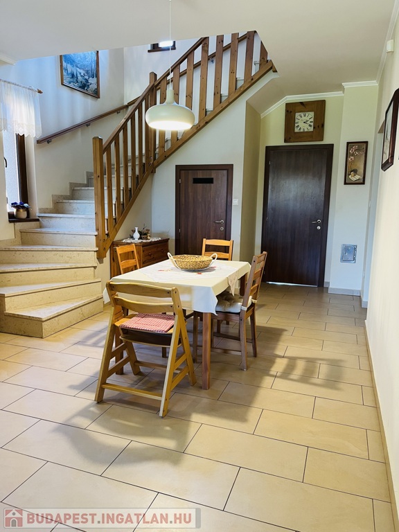 •Ètkezô-konyha-nappali(innen vezet a mèszkôbôl kèszült lèpcsô az emeletre,amely alatt bepolcozott spàjz került kialakítàsra)