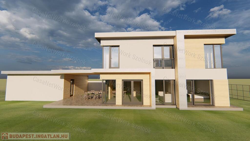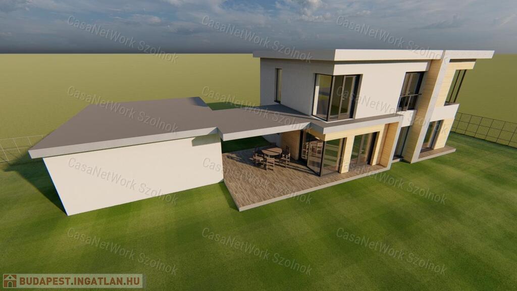 - kétszintes, tégla építésű családi ház 130 m2 alapterülettel, 20 m2 terasszal és 36 m2 garázzsal