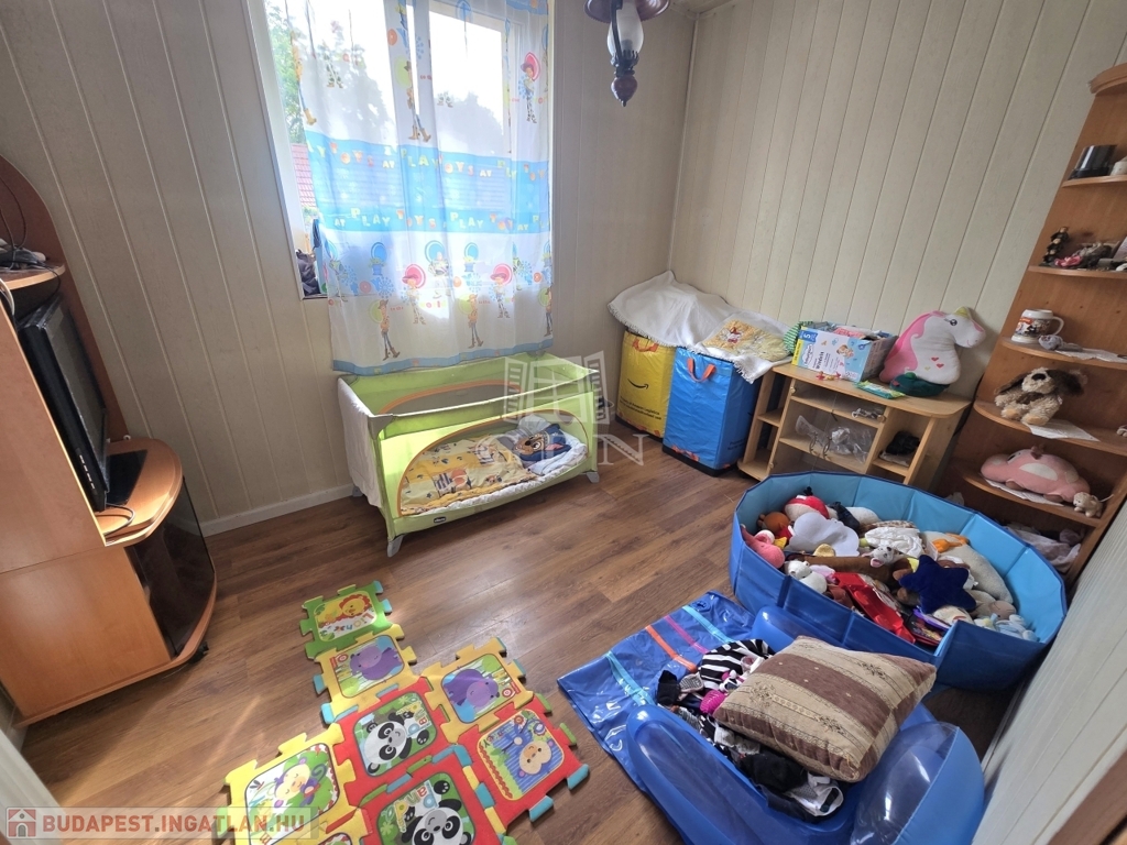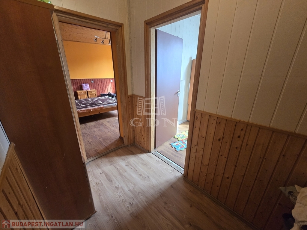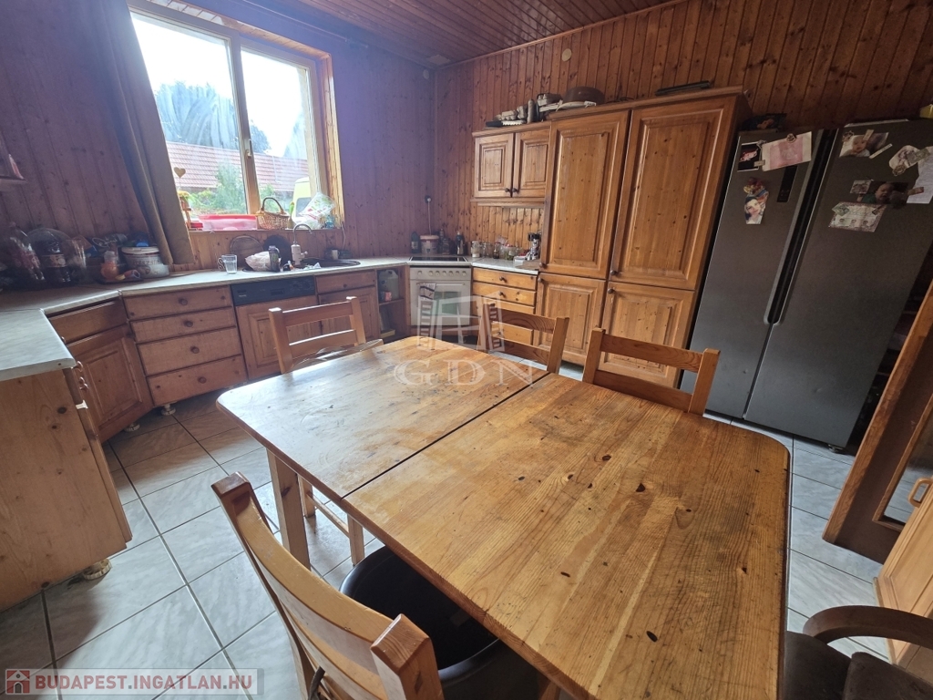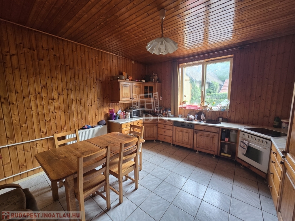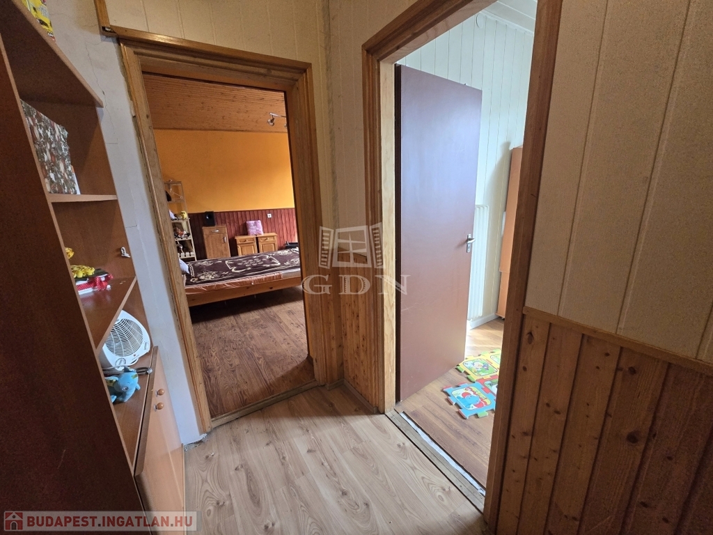Az ingatlan 135 m²-es, vegyes falazatú családi ház, mely kialakításának köszönhetően kétgenerációs életformára is kiválóan alkalmas. A két lakrész teljesen külön bejárattal rendelkezik, ugyanakkor egy középső ajtón keresztül az épületen belül is van átjárási lehetőség. Az első részben három szoba, tágas konyha étkezővel, folyosó, külön WC, fürdőszoba, valamint a nagyobb szobából nyíló két gardróbhelyiség található. A ház második lakrésze egy közlekedőből, két szobából, főzőfülkéből és fürdőszobából (WC-vel) áll, így akár önálló lakrészként is funkcionálhat. A nyílászárók részben fa, részben műanyag szerkezetűek, a fűtés pedig vízteres kandallórendszerrel megoldott.