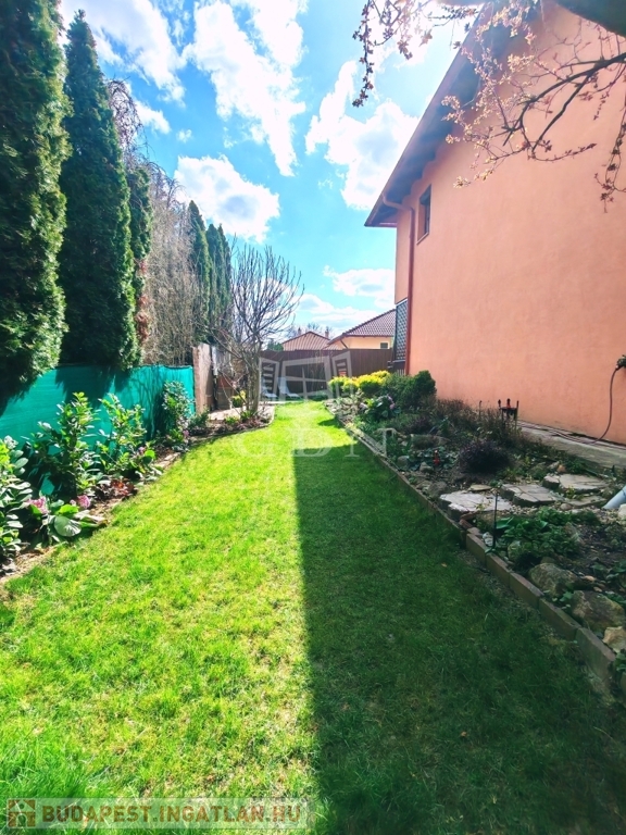 A hozzá tartozó 154 m²-es saját kert igazi érték ebben a kategóriában – rendezett, privát, és pont annyira tágas, hogy élvezni lehessen, ne pedig fenntartani. A 12 m²-es fedett terasz, az emeleti erkély és a kertben található, kb. 4 m²-es saját tároló tovább erősítik azt az életérzést, hogy itt a belső és külső terek harmonikusan kapcsolódnak egymáshoz.