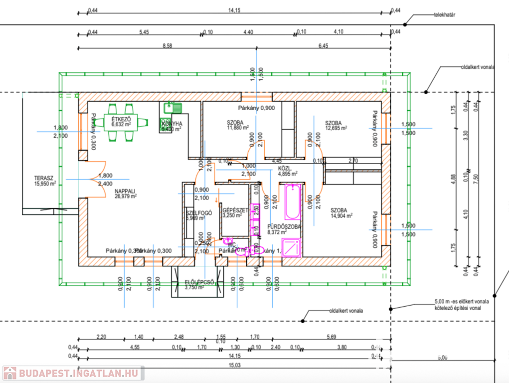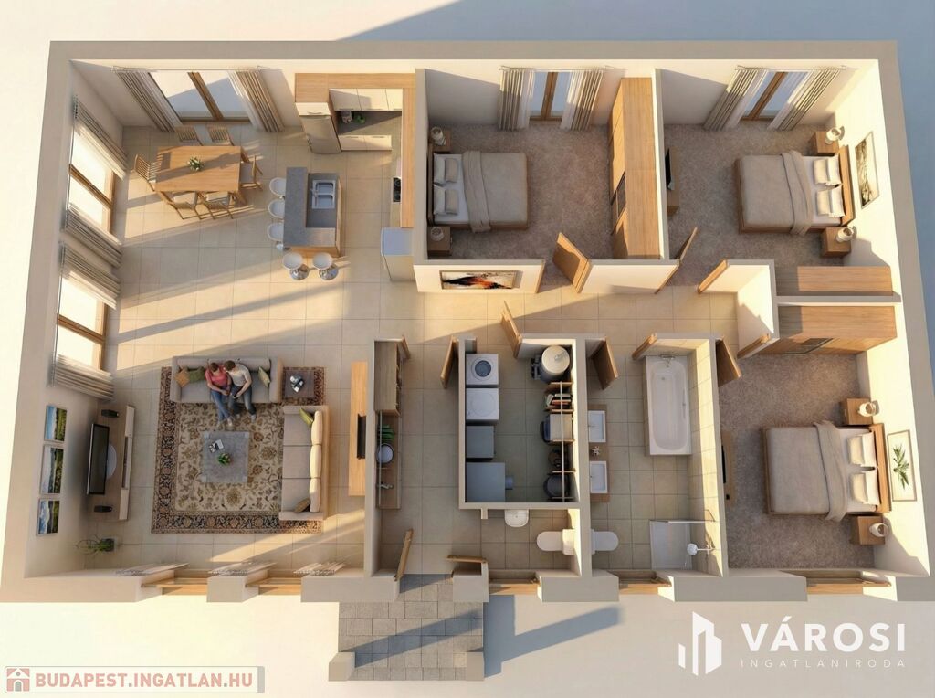 - 102 m2 nettó alapterület, nappali+3 hálószobás elrendezés