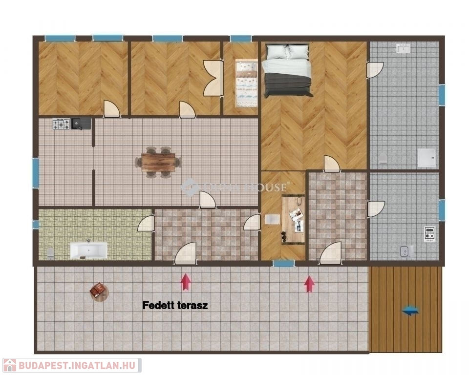 Az ingatlan egyedülálló adottsága, hogy egy házban két külön lakrész található, ezért tökéletes választás azok számára, akik generációkat szeretnének egy fedél alatt, de mégis különálló lakrészben élni, vagy egyszerűen kihasználnák az egyik részt bérbeadásra, hosszú távú befektetésként.