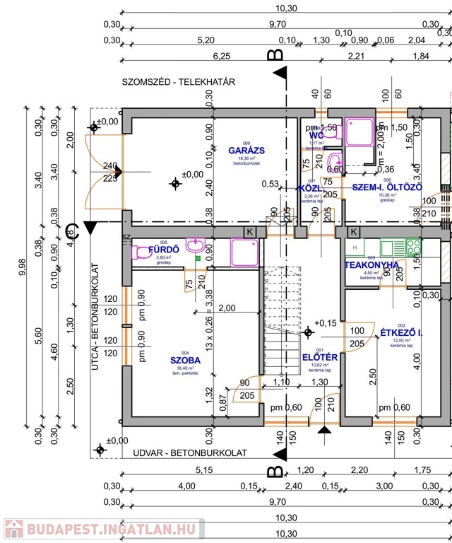 Az épület két bejárattal rendelkezik és a garázs felől is megközelithető.