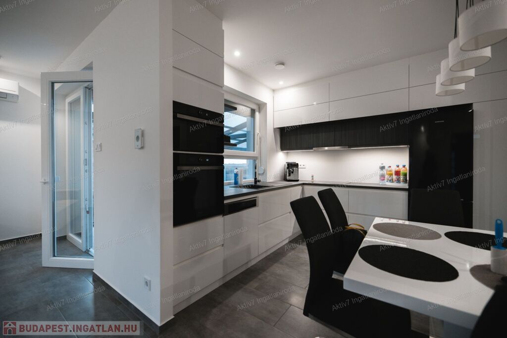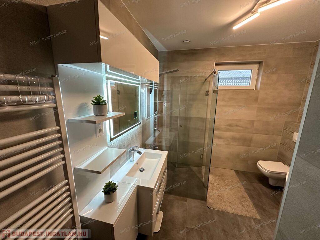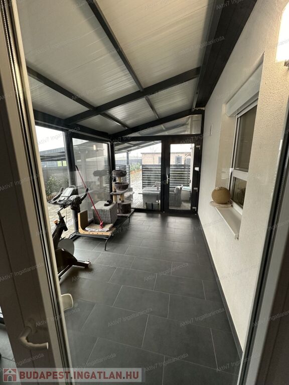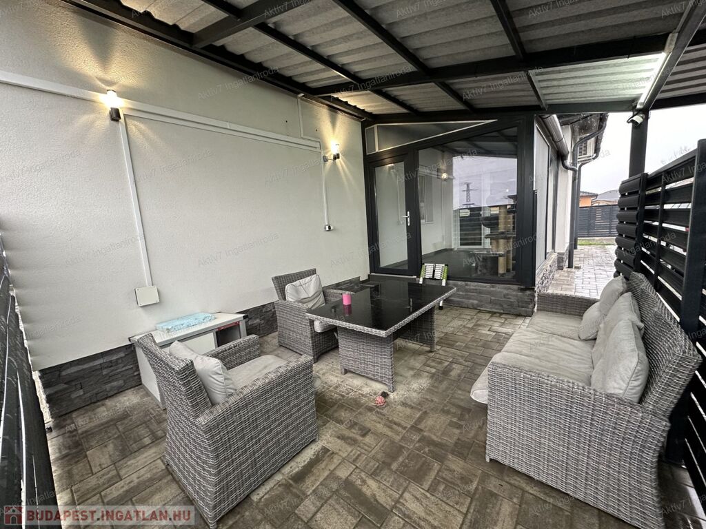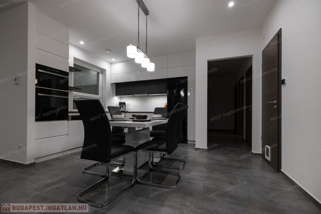 A ház modern felszereltséggel rendelkezik: Bosch kondenzációs kazán padlófűtéssel és okos vezérléssel, központi hővisszanyerős szellőztetőrendszer, 2 darab Panasonic hűtő-fűtő klíma, vízlágyító berendezés, 8 kamerás biztonsági rendszer és riasztó. A beépített konyhabútor minőségi kivitelezésű, Whirlpool gépekkel felszerelt (sütő, mikró, mosogatógép, indukciós főzőlap).