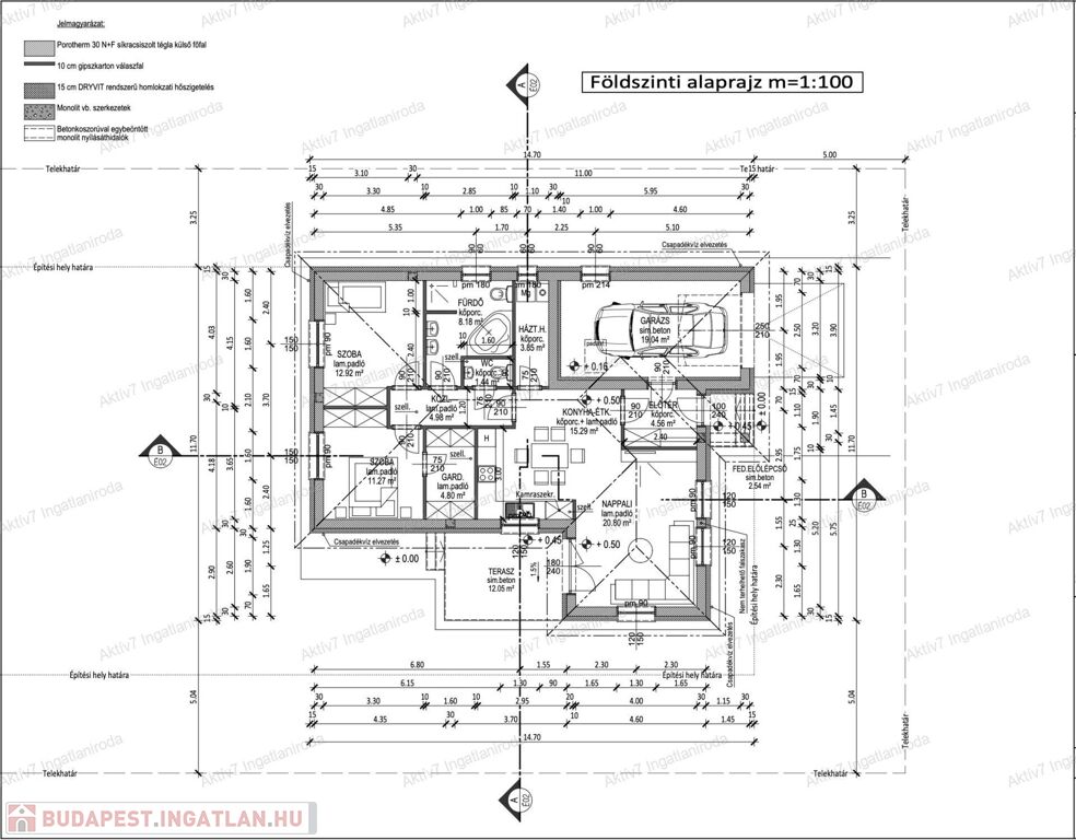 A ház kiváló minőségű, prémium anyagokból készült, és magas műszaki tartalommal rendelkezik. Az 88 m2 alapterületű lakórész elrendezése praktikus: előszoba, amerikai konyhás étkező-nappali, 2 hálószoba, gardrób, háztartási helyiség, vendég WC, valamint egy tágas fürdőszoba káddal, zuhanyzóval és WC-vel. A házhoz tartozik egy 19 m²-es garázs, mely közvetlen bejárással kapcsolódik a lakóterülethez, illetve egy 30 m²-es fedett terasz, mely részben üvegezett, szigetelt, másik része pedig nyitott, autóbeállóval bővítve.
