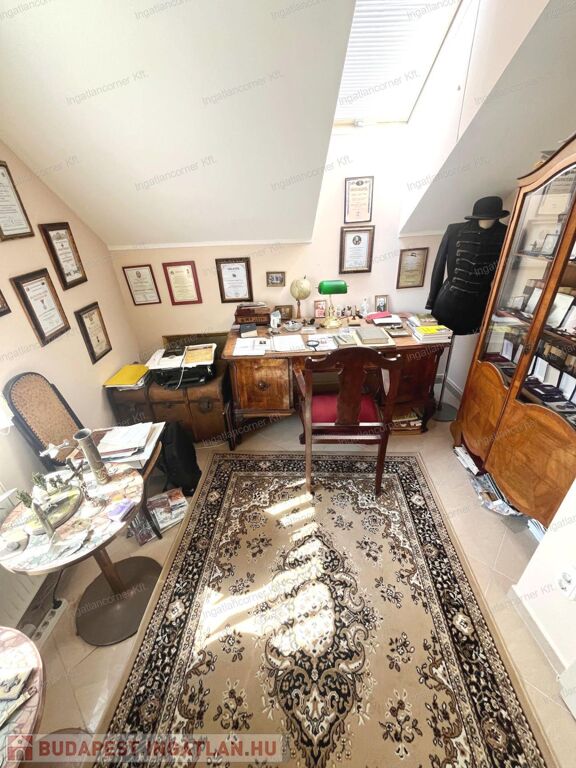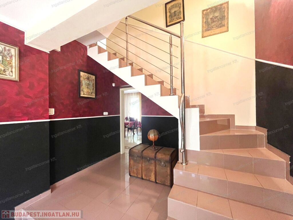 • Emelet: 3 hálószoba, dolgozószoba, gardrób, hall, fürdőszoba, külön WC, erkély