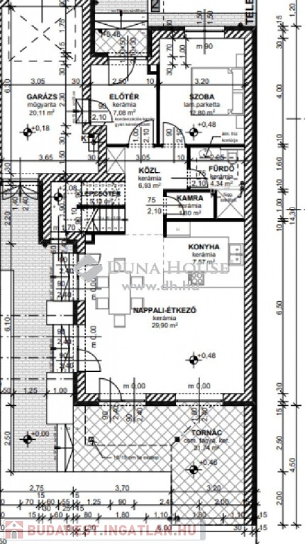 Napfényes, amerikai konyhás nappali (37,47 négyzetméter) szoba, fürdőszoba, kamra, előtér, fedett, nagyméretű terasz.