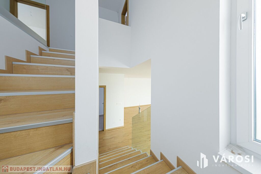 A kétszintes épületben 4 tágas szoba, egy világos amerikai konyhás nappali, valamint 2 fürdőszoba található az egyéb helyiségek mellett a melléklet alaprajz szerinti elrendezésben. A külön fürdő és WC biztosítják a család maximális kényelmét. Az ingatlant prémium anyagok felhasználásával építették, a tervezés során a jövőbeni lakók maximális komfortját tartották szem előtt..
