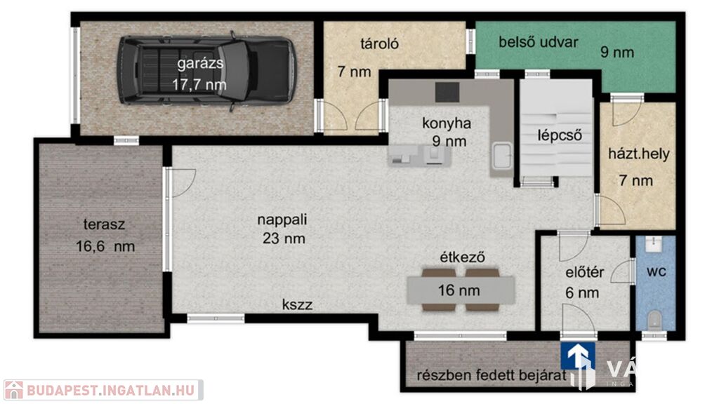 - 164 nm lakótér + 24 nm-es terasz, 8,7 nm patió.