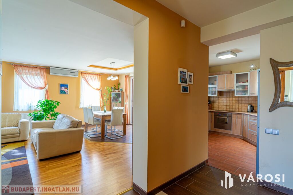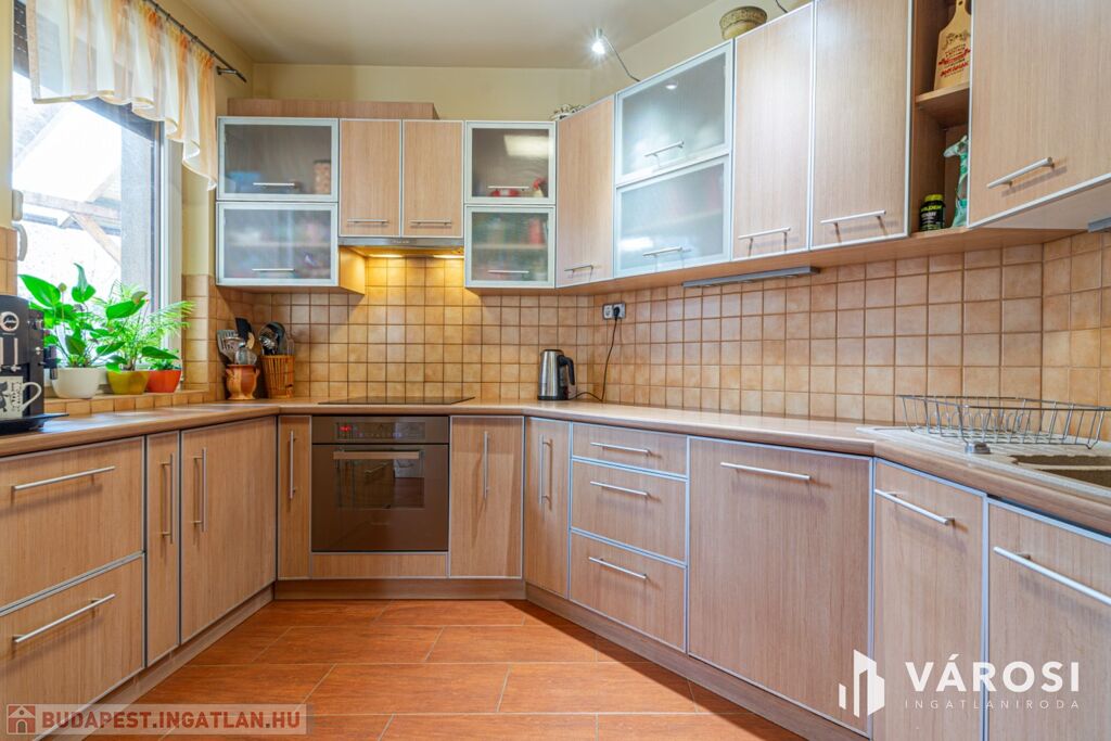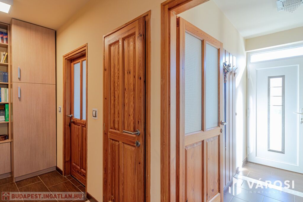mind a nappaliból, mind a szülői hálóból megközelíthető. Az ingatlan gondozott előkerttel és