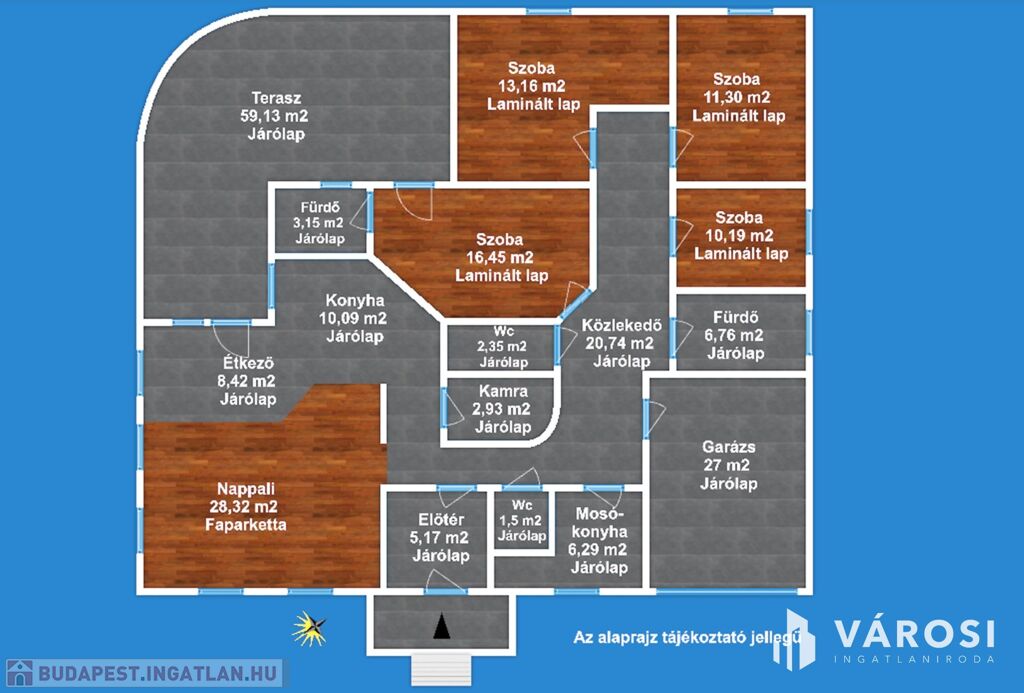 tetszés szerint további helyiségek kialakítására nyílik lehetőség. A ház délkelet-délnyugati