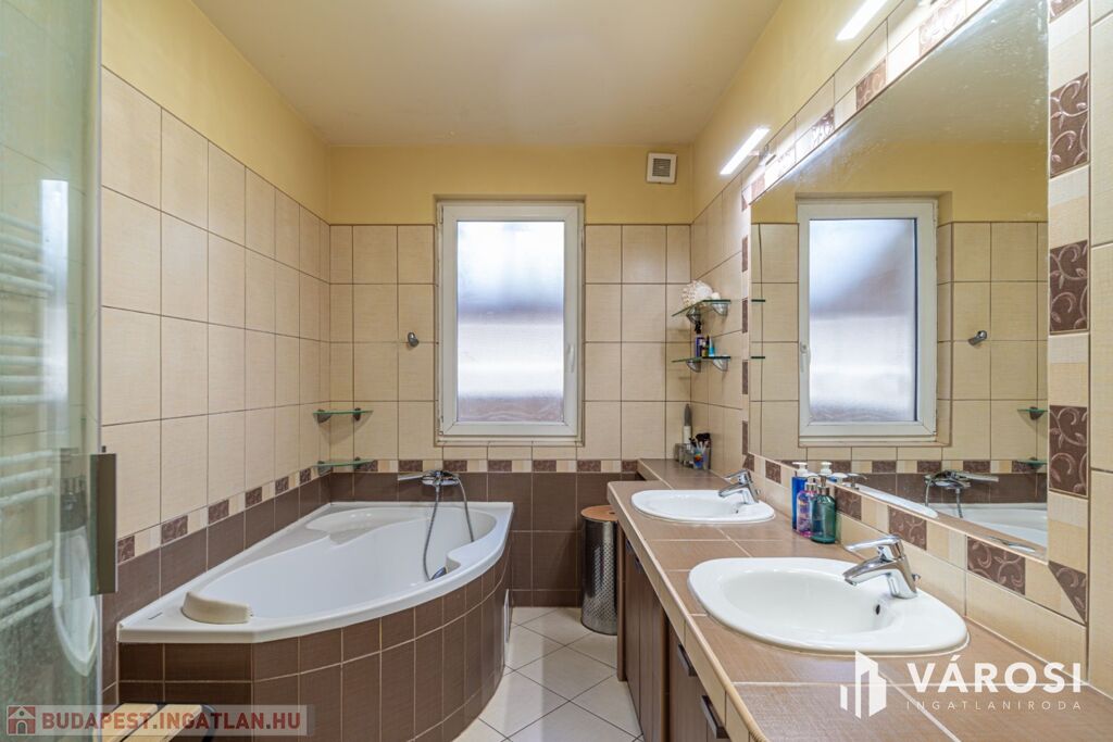 hálószoba, tágas fürdőszoba (dupla, épített mosdóval, fürdőkáddal és tusolóval), külön