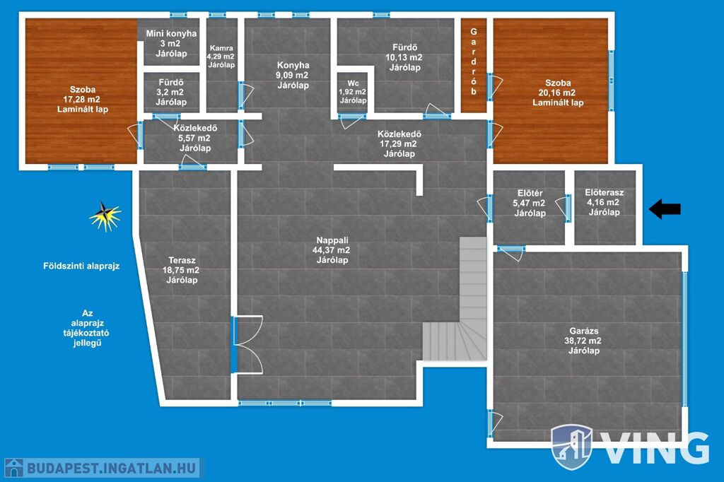 A ház 5 db hálószobával, 1 db " egy szemmel alig látható" 45 négyzetméteres nappalival, 2 db konyhával ,3 db fürdőszobával, 2 db külön Wc-vel,, és erkélyekkel, terasszal, valamint gardróbbal, és előtér közlekedőkkel, és háztartási helyiséggel (ezek mellett számtalan funkcióval) rendelkezik. A lakás központi része a nappali, ahonnan könnyedén kijutunk a hangulatos teraszon keresztül növények sokaságában pompázó kertbe. Az ingatlan elhelyezkedésre, minősége, kialakítása miatt rendkívül sokrétű a felhasználása - akár lakás, vagy befektetési célra -, amely maximálisan kiemeli ezt az ingatlant az átlagos házak sorából és egyedülálló választássá teszi azt.
