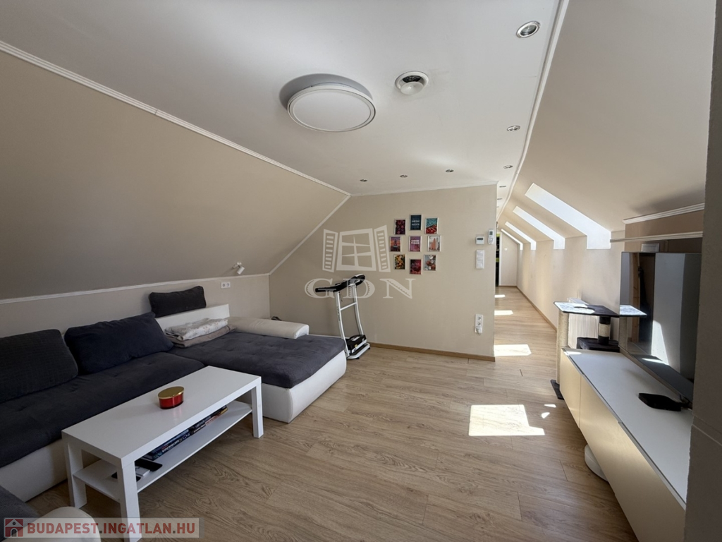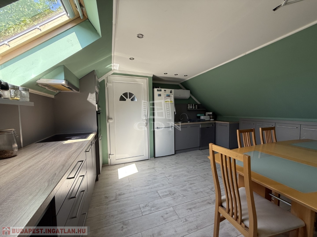 • Tetőtéri lakás (54 m²): modern, fiatalos stílusban kialakított, előtér, konyha-étkező, nappali, két hálószoba, fürdőszoba WC-vel. Klimatizált, inverteres (7 kW és 3,5 kW) hűtő-fűtő klímákkal felszerelve.