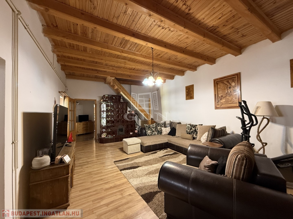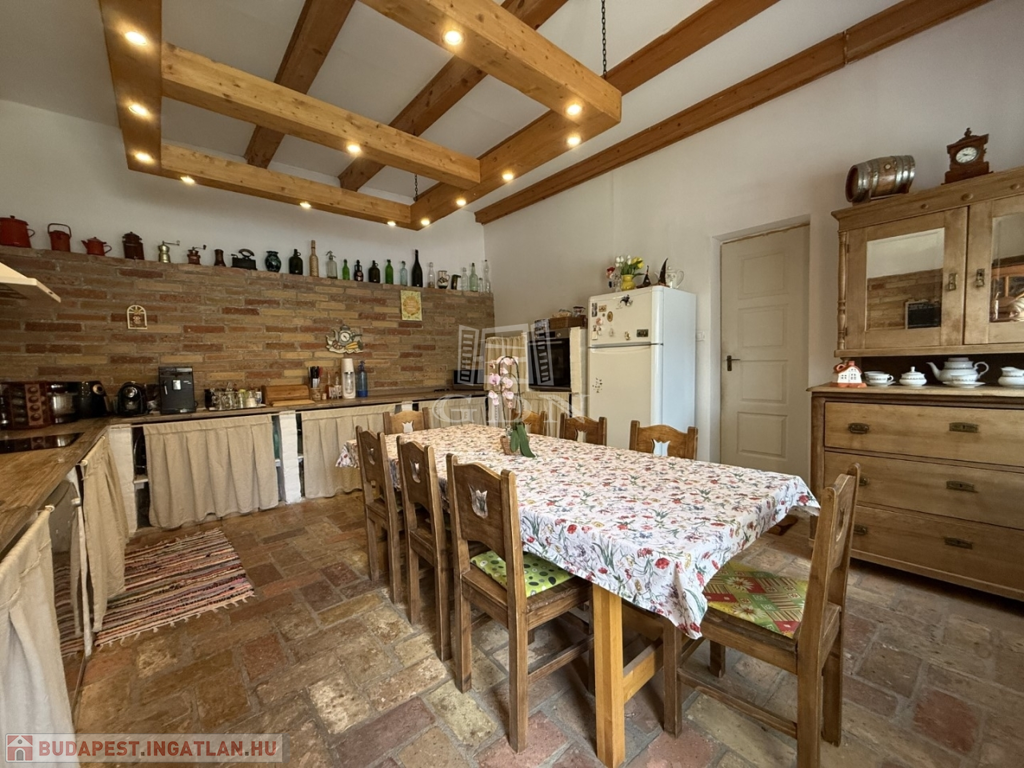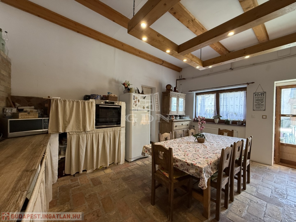 • Földszinti lakás (93 m²): rusztikus hangulatú, előszoba, konyha-étkező, tágas, világos nappali (35 m²), hálószoba, fürdő (zuhanyzós), külön WC, háztartási helyiség. Hangulatos, látszógerendás mennyezet és cserépkályha teszi különlegessé.