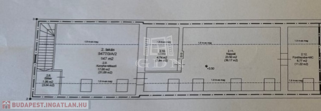 A most eladásra kínált belső lakás hasznos alapterülete összesen 147 m², és két különálló, de akár egybenyitható lakrészt tartalmaz: