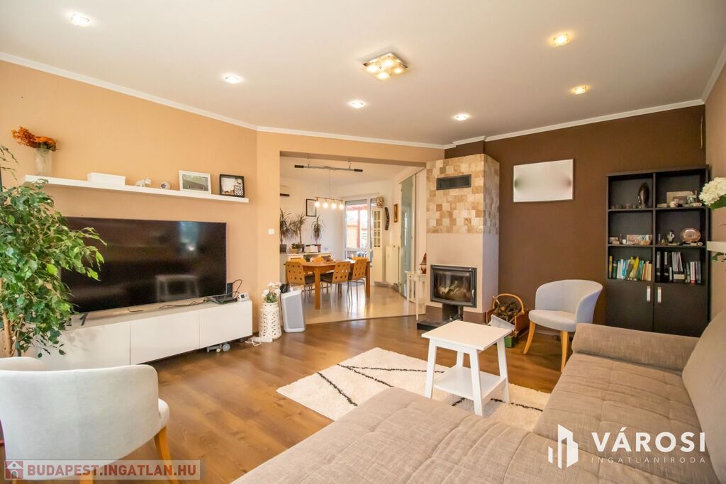 A ház 2001-ben nagycsaládosoknak készült, ezért a bruttó 225, nettó 200 négyzetméteren van benne az amerikai konyhás nappalin kívül még 5 külön hálószoba, 2 fürdőszoba, plussz egy külön WC és egy két autó beállása alkalmas, 32 négyzetméteres, fűtött garázs is. Udvar felől egy nagy, fedett terasz is lehetőséget nyújt a szabadban való pihenésre. 2013-ban történt egy felújítás és azóta is szinte új állapotban van.