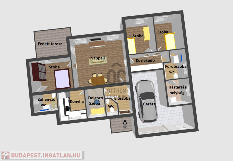 • garázs a házon belül egy járműnek, saját tárolóval