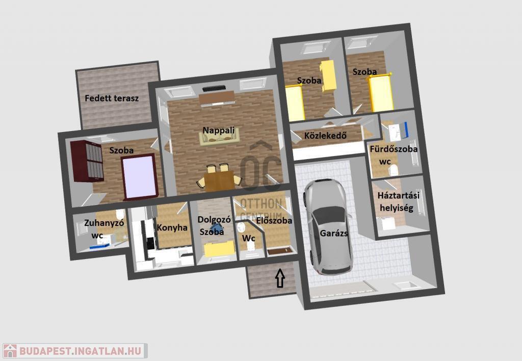 garázs a házon belül egy járműnek, saját tárolóval