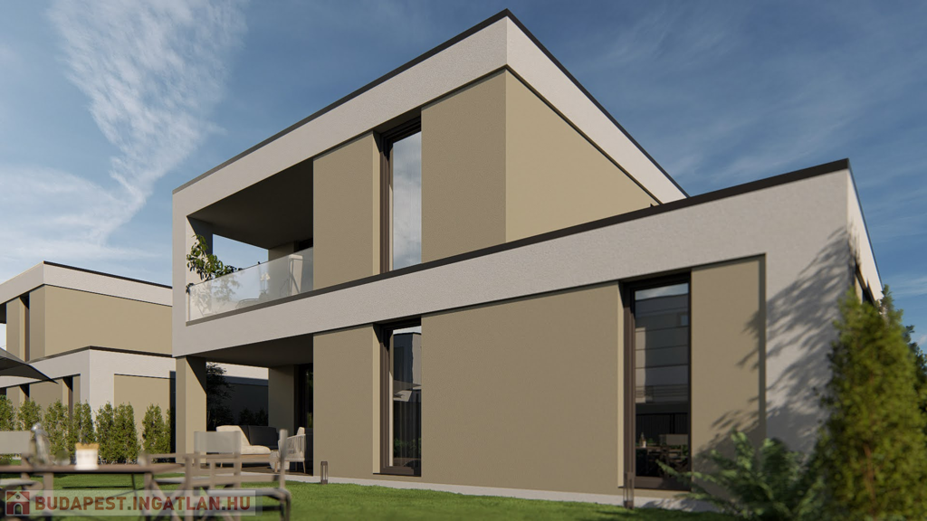 Székesfehérváron, az Öreghegyen eladó egy 2025/26-ban épülő, kétszintes, 163 m2-es modern családi ház. A ház földszintje nappali + 1 szobás kialakítású, étkező-konyhával, tárolóval, vendég WC-vel és előszobával. A szobához kapcsolódik egy gardrób szoba és egy privát fürdőszoba is. A nappalihoz egy terasz kapcsolódik. Az emeleti részen három szoba, fürdőszoba, előtér és külön WC található. Itt a két szobához szintén terasz kapcsolódik. A parkolásról egy 19,8 m2-es garázs és egy kültéri beálló is gondoskodik.