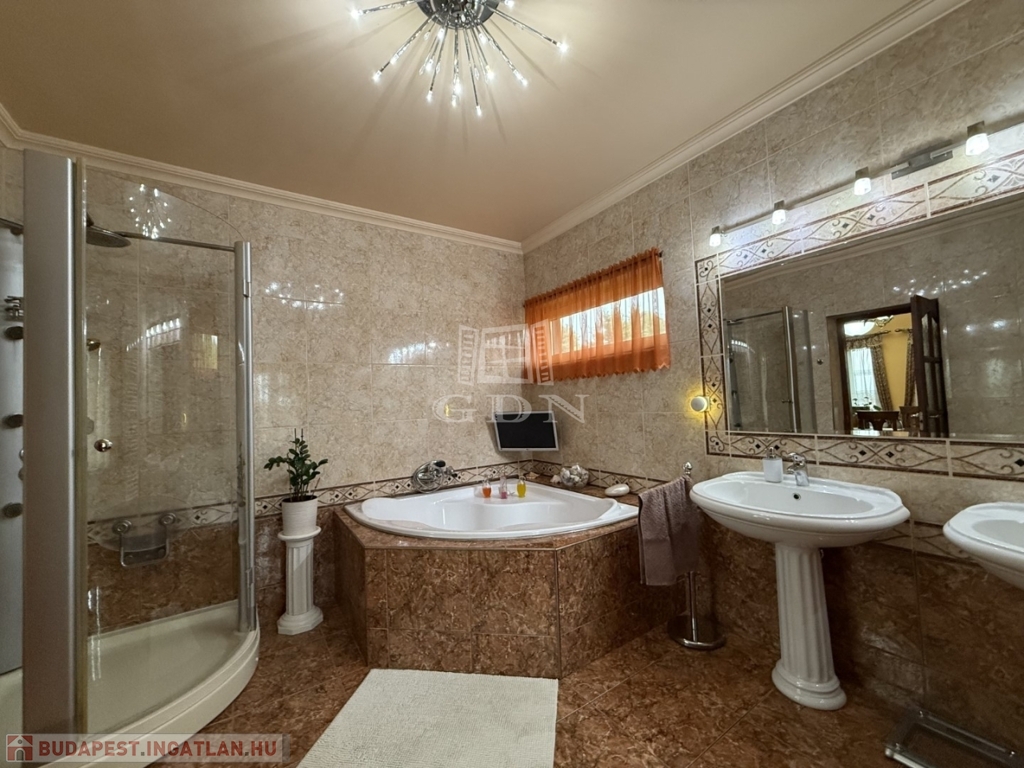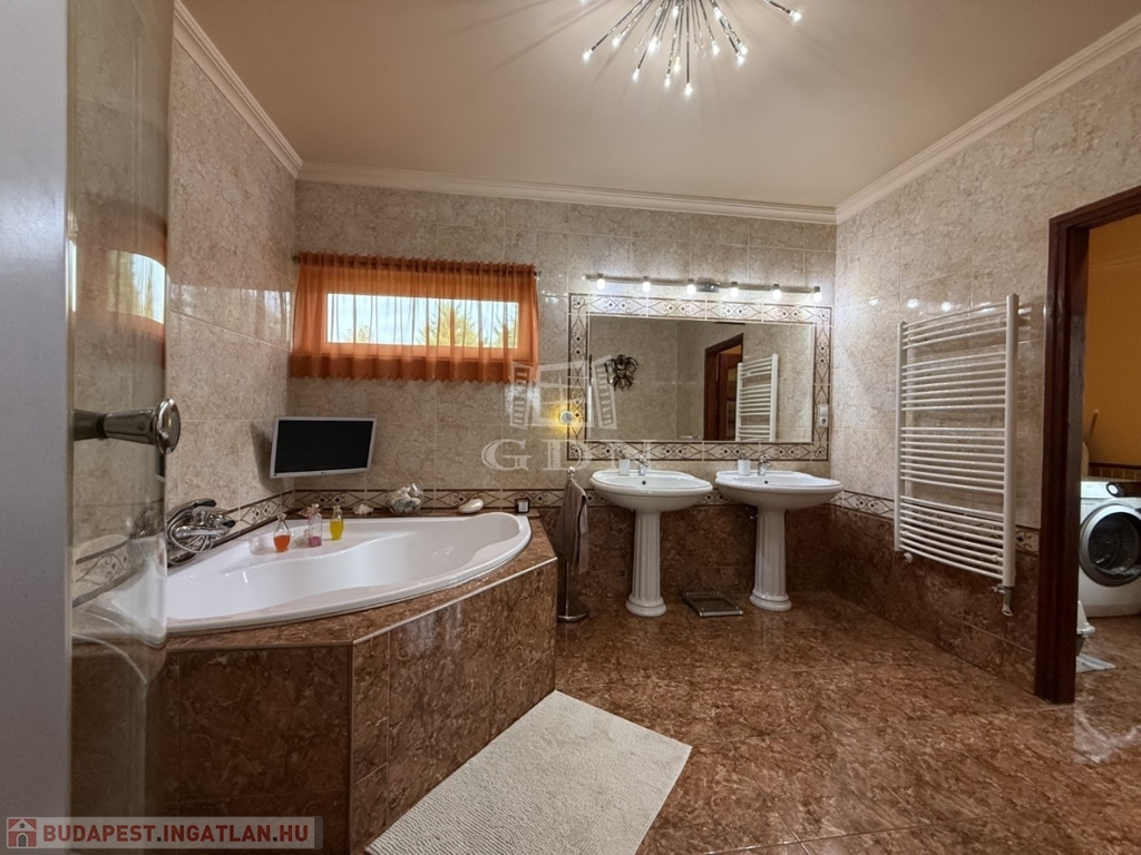 Ugyanitt eladó a földszinti lakás is, szintén saját garázzsal, telekrésszel és külön utcai bejárattal. A ház összesen 338m2 hasznos alapterületű. Az egész ház együttes megvásárlása esetén kedvezmény!