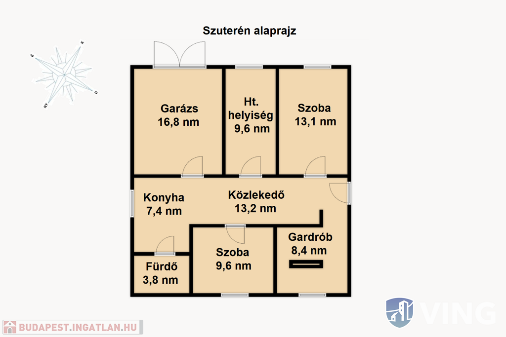 A földszinten amerikai konyhás nappali, két szoba, spájz és fürdőszoba található. Az emeleten 3 szoba, konyha, spájz, fürdőszoba helyezkedik el. Míg a szuterén szinten 2 szoba, gardrób, háztartási helyiség, fürdőszoba és garázs került kialakításra.