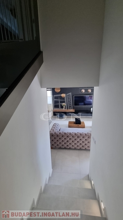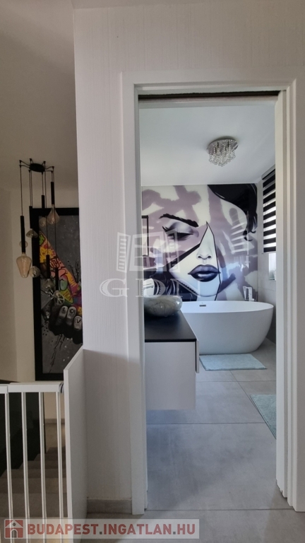 H-004303. Ráchegy, frekventált, kedvelt részén, összközműves építési telken, lakóparki környezetben, eladó egy 2022-ben épült kétszintes, igényes, egyedi kivitelezésű 150m2 hasznos alapterületű, nappali + 4 szobás+ jakuzzi, szaunaház/ konditeremmel ellátott önálló telekterülettel rendelkező családi ház, garázzsal, terasszal.