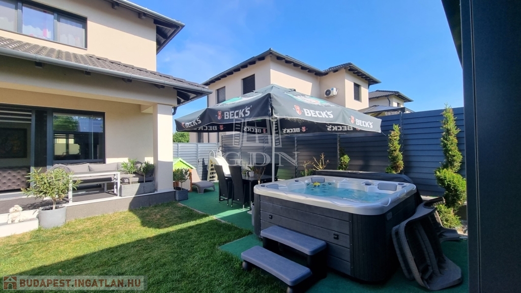 Energiahatékony ingatlan, saját 480m2 telekterület, kerti szaunaház, jakuzzi.
