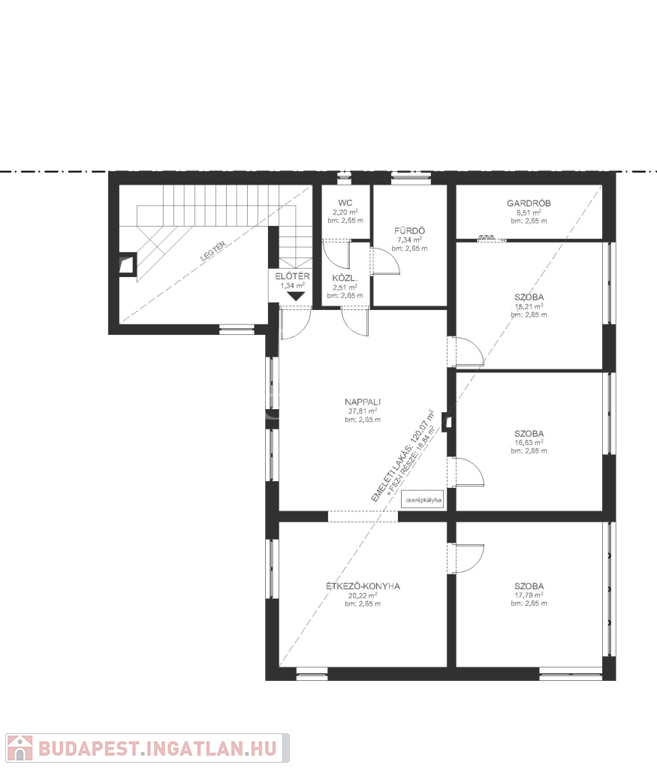 Felső szint – 137 m², külön bejárattal: