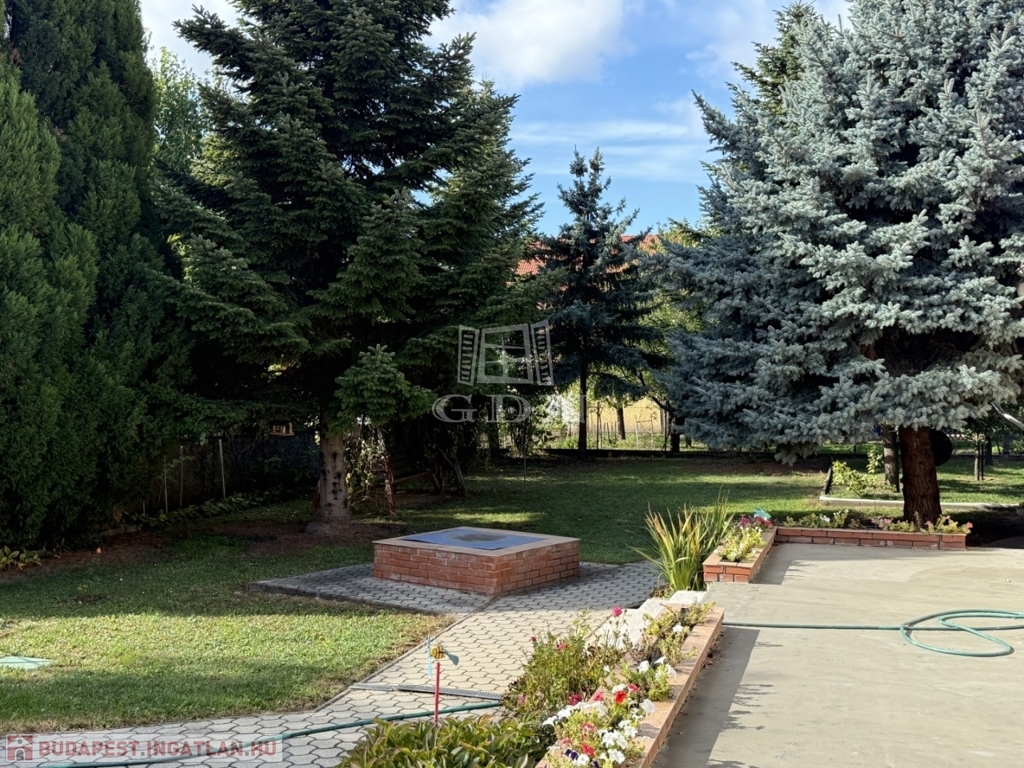 A gondozott kert automata öntözőrendszerrel, árnyékot adó, több évtizedes fákkal, kiépített kerti sütögetővel és két terasszal – egy fedett (27 m²) és egy nyitott (40 m²) – várja új tulajdonosát. Egy különálló kerti kisház biztosít helyet a fa- és szerszámtárolásra, az utcafronton pedig egy plusz tárolóhelyiség is kialakításra került.