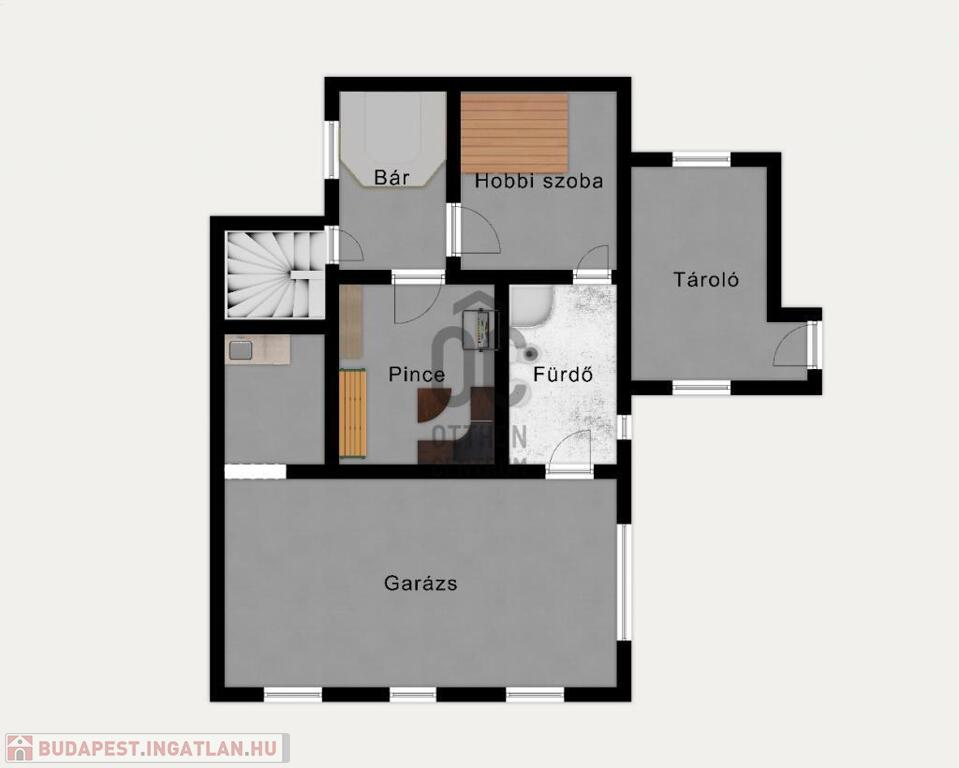Pinceszint: garázs, tároló, fürdőszoba, hobbi szoba, szauna, bár/borozó