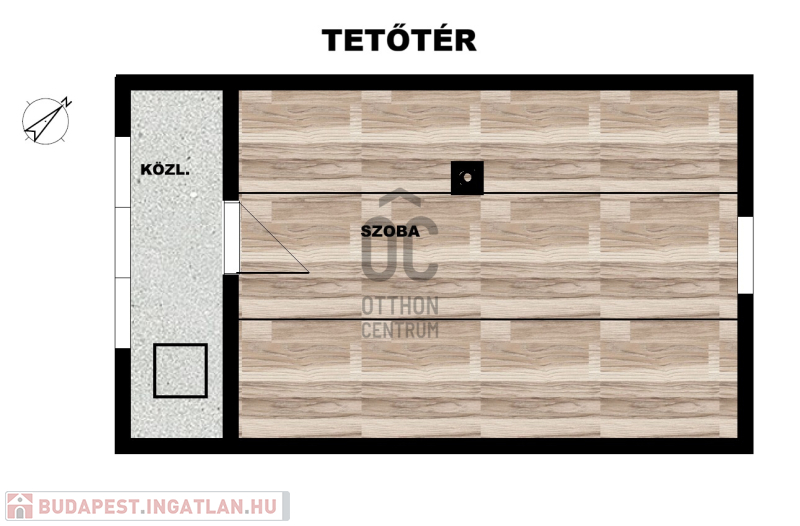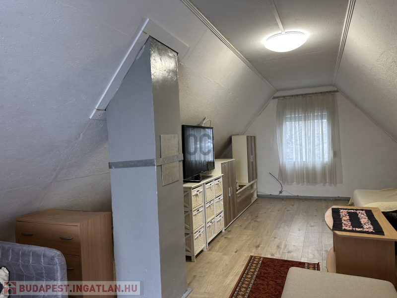 Tetőtér (12,4m2): az előszobából lenyitható lépcsőn lehet feljutni. Közlekedő és egy nagy szoba fogad bennünket.