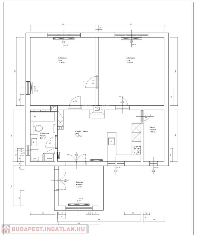 A ház 79m2 hasznos alapterületű, elosztását tekintve:
